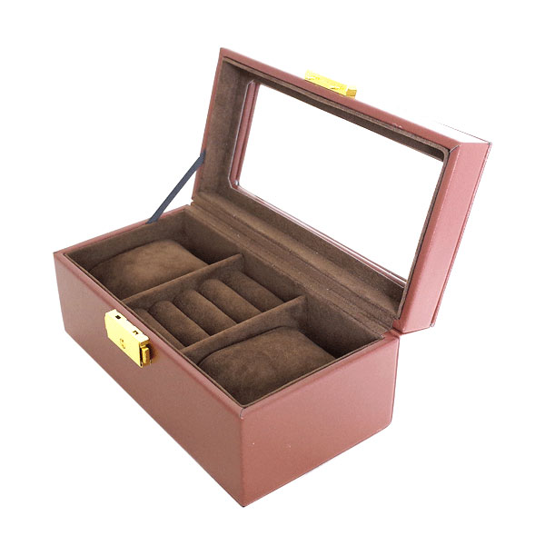 ペアウォッチケース 鍵付き アクセサリーケース PAIR-BOX-NBR ブラウン高級感あふれる時計ケース。