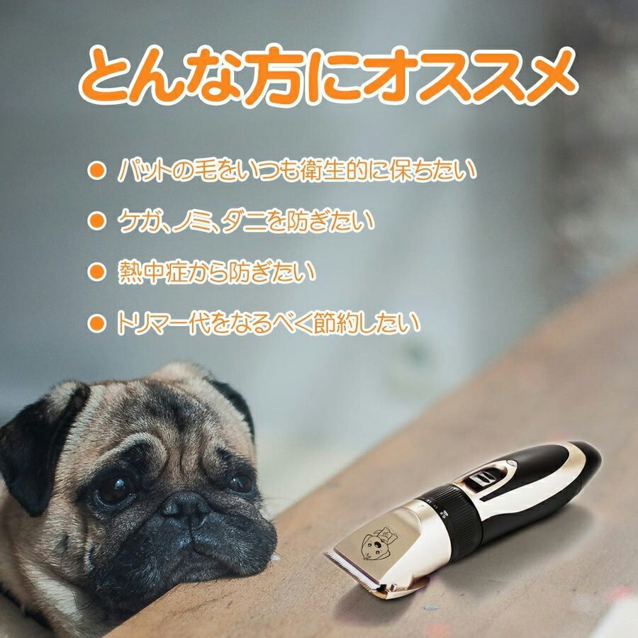 ペット バリカン 電動 低騒音 犬 猫 プロ仕様 犬 猫 トリマータイプ 充電式 全身カット用 コードレス 三ヶ月保証&PDF日本語説明書