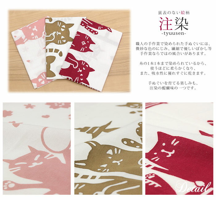 「注染」の技法で職人さんがひとつひとつ染め上げている為、独特の柔らかな風合いに染め上がっています。