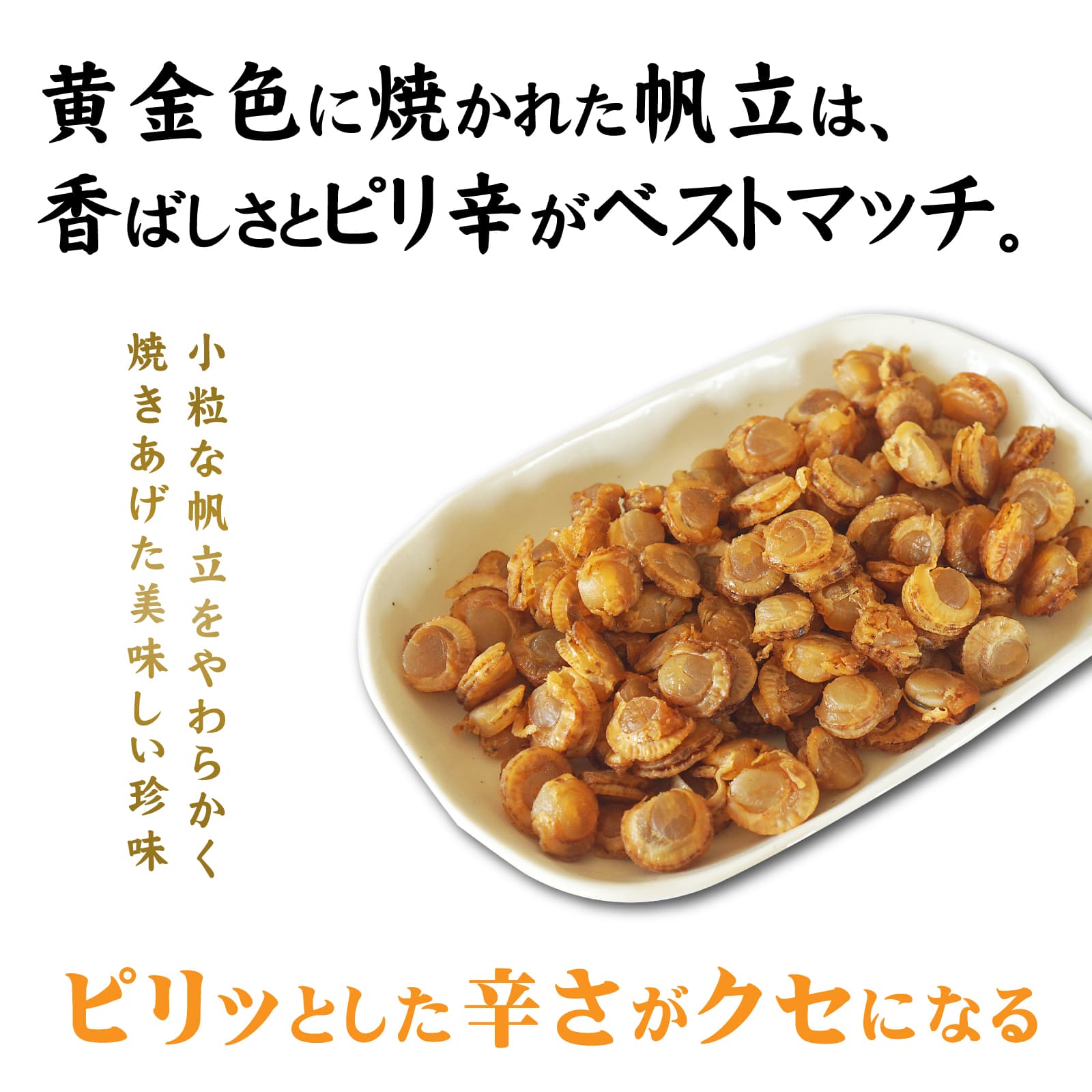 珍味 おつまみ 焼き 帆立 80g×2袋 ピリ辛 小粒 ベビー帆立 柔らか貝柱 旨辛 個包装 ほたて ホタテ
