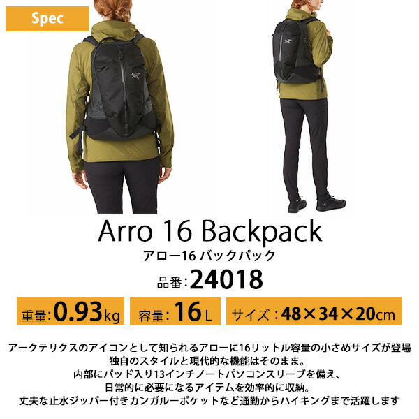 ■ブランド:ARC'TERYX ■商品名:ARRO 16(アロー16) ■サイズ:約48×34×20cm ■重量:約0.926kg ■容量:約16L ■素材:ナイロン ※並行輸入品となります(弊社の商品は海外代理店と正規取引を行っている輸入会社から仕入れた正規商品となります。