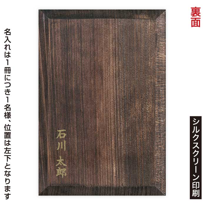 ●表紙素材: 広島杉 ●黒加工: オイルステイン仕上げ ●ページ数: 24折(両面48面)アコーディオン折 ●サイズ : 小:116mm x 165mm ●おもさ : 小:約170g ●付属品 : プロフィール欄シール ●注意点 : モニターの発色具合によって実際の物と異なる場合がございます。