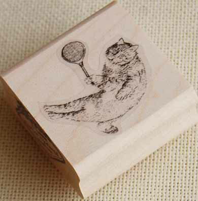 ラバースタンプ 子猫のバドミントン 木の持ち手 ウッドマウント 輸入スタンプ アートスタンプ ゴム印・スタンプ