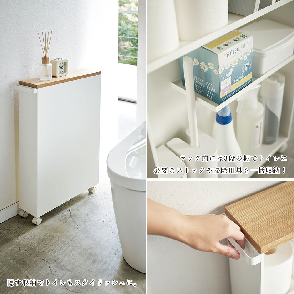 トイレに収納する場所がなくて困っている方にもおすすめ! 便器と壁の隙間など、デッドスペースを有効活用して、トイレに必要なトイレットペーパーのストックやトイレ用洗剤や除菌シートなどの掃除用具、文庫本などを一括で収納できるオシャレなラックです。