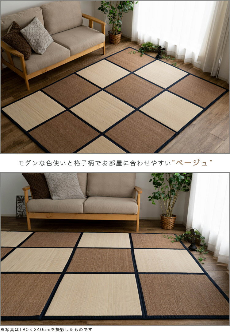 湿気の多い日本の夏に、自然の涼感を感じる夏ラグです! カラー: ベージュ " 落ち着いた格子柄のモダンデザイン " ナチュラルな竹の素材と格子柄が合わさりました。